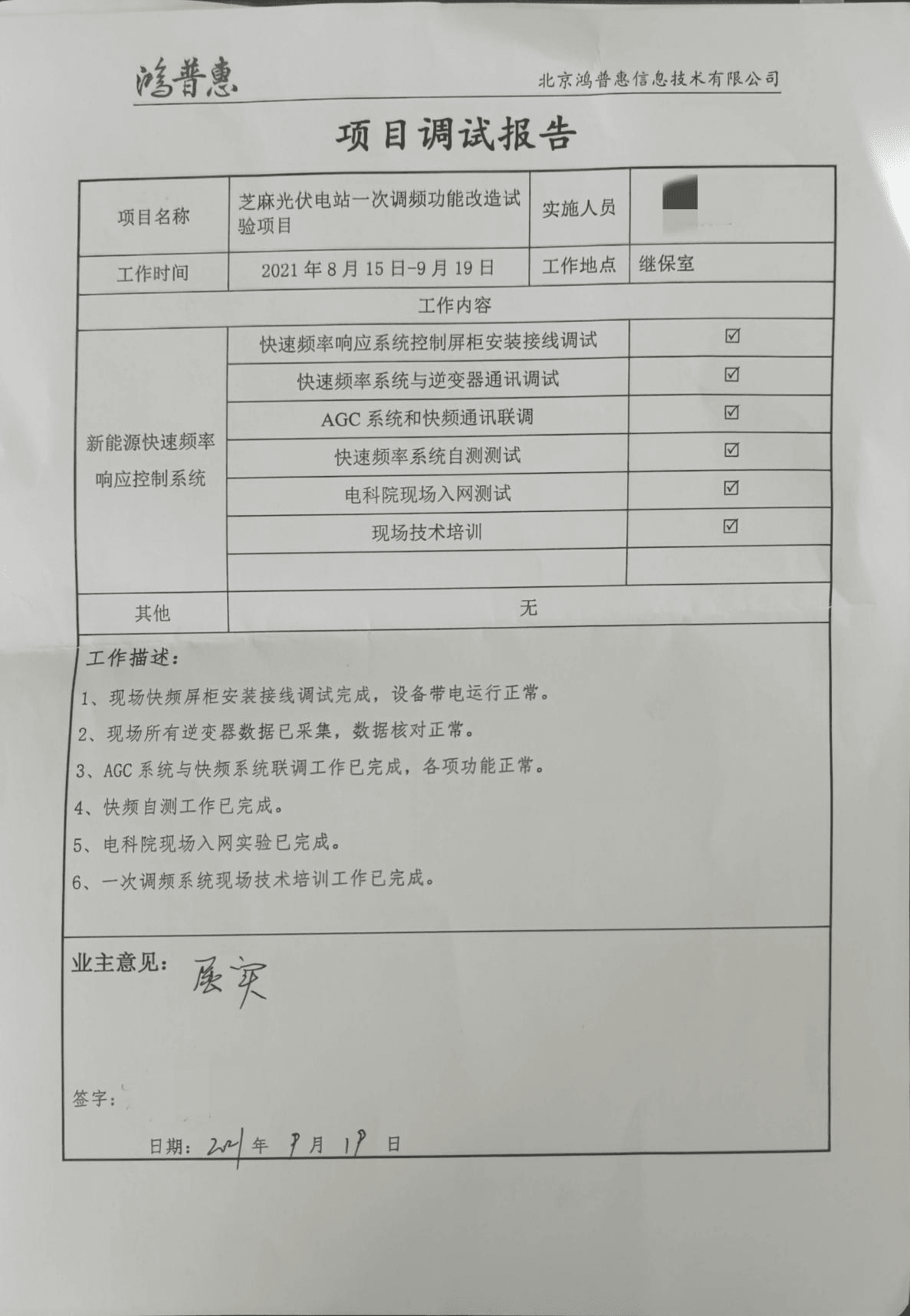 此次兩個項目的成功實施,是繼我公司一次調頻產品在實驗室環(huán)境下,通過云南電力試驗研究院(集團)有限公司的功能及邏輯規(guī)范入網測試后,現場實測情況下對產品性能的成功驗證,測試過程中感謝業(yè)主單位的大力配合和云南電科院技術專家的無私支持,公司將繼續(xù)致力于提供優(yōu)質可靠的產品和專業(yè)的服務。