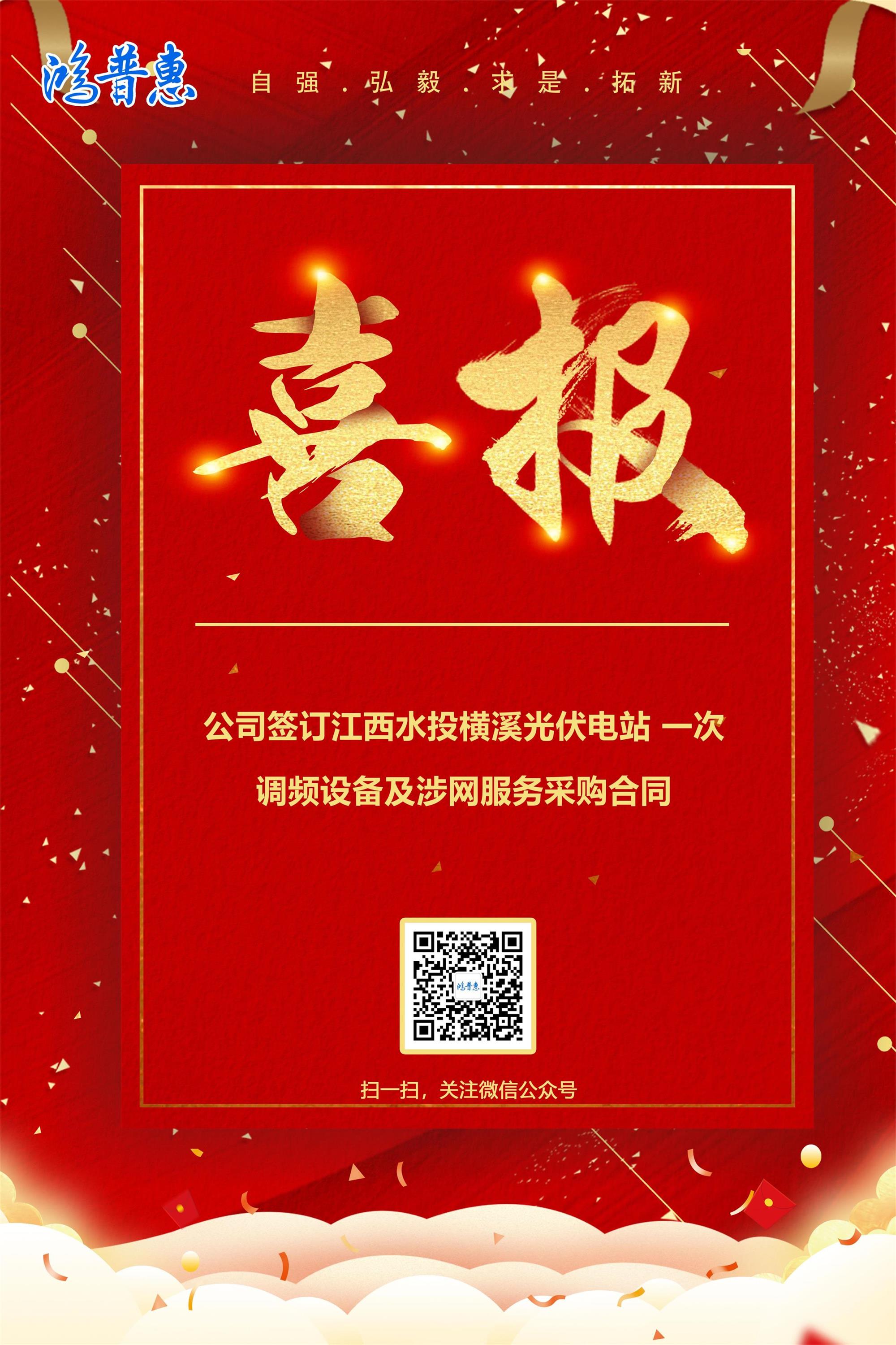 熱烈祝賀公司簽訂江西水投橫溪光伏電站 一次調(diào)頻設(shè)備及涉網(wǎng)服務(wù)采購(gòu)合同。