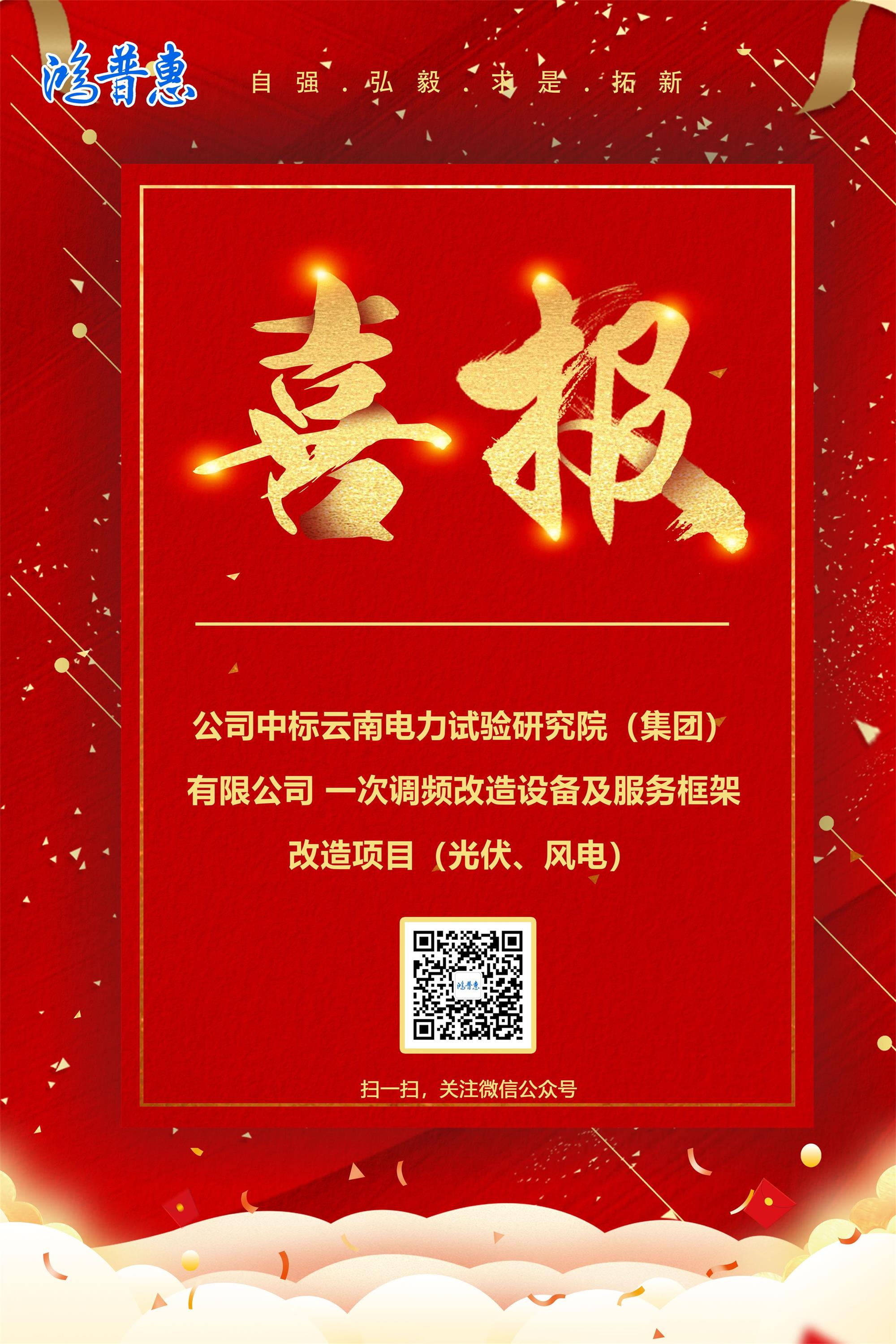 熱烈祝賀公司中標(biāo)云南電力試驗(yàn)研究院(集團(tuán))有限公司一次調(diào)頻改造設(shè)備及服務(wù)框架改造項(xiàng)目(風(fēng)電、光伏),并順利簽訂框架合同。