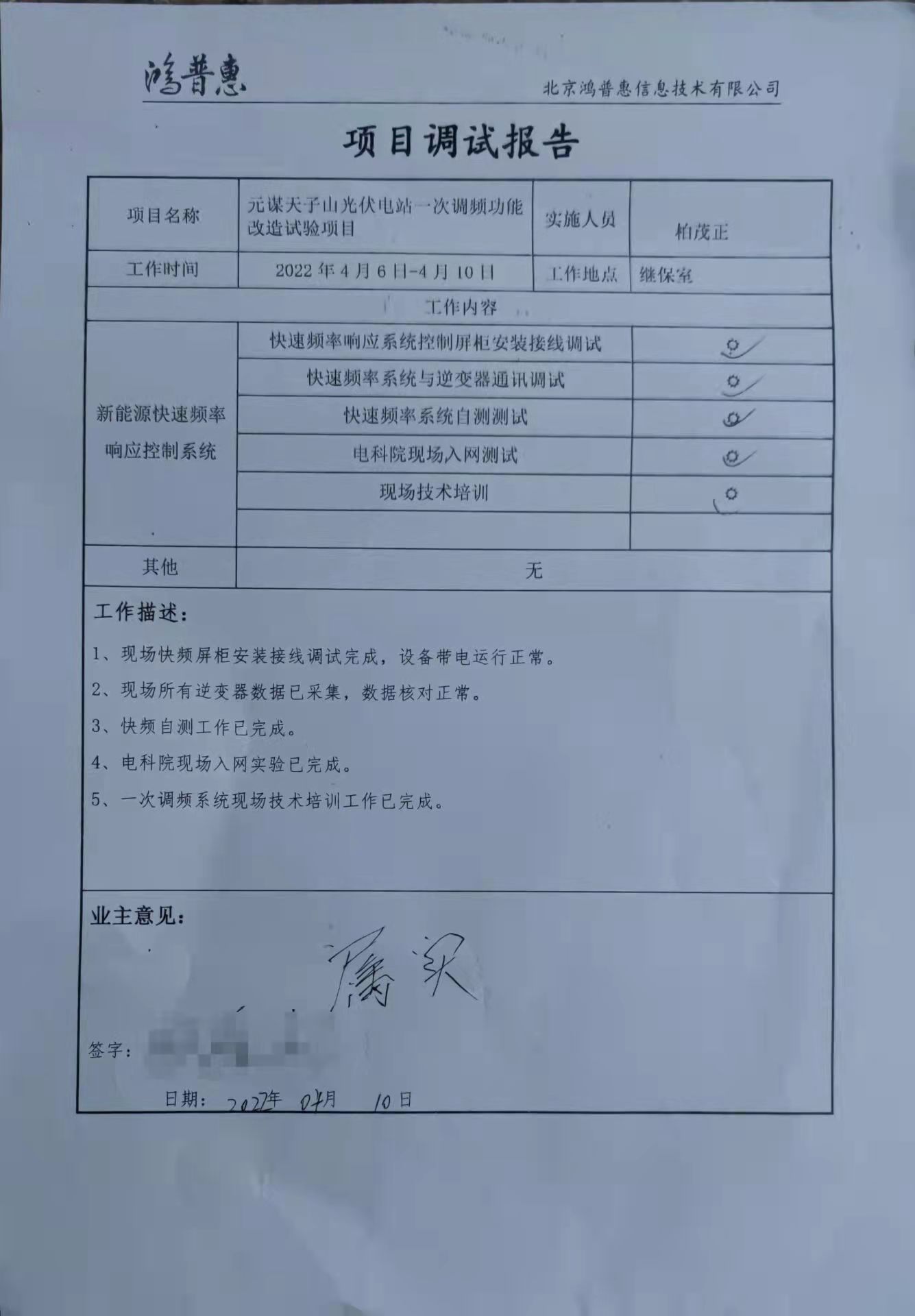 貴州威寧能源公司林場(chǎng)農(nóng)業(yè)光伏電站一次調(diào)頻系統(tǒng)改造通過(guò)入網(wǎng)測(cè)試
