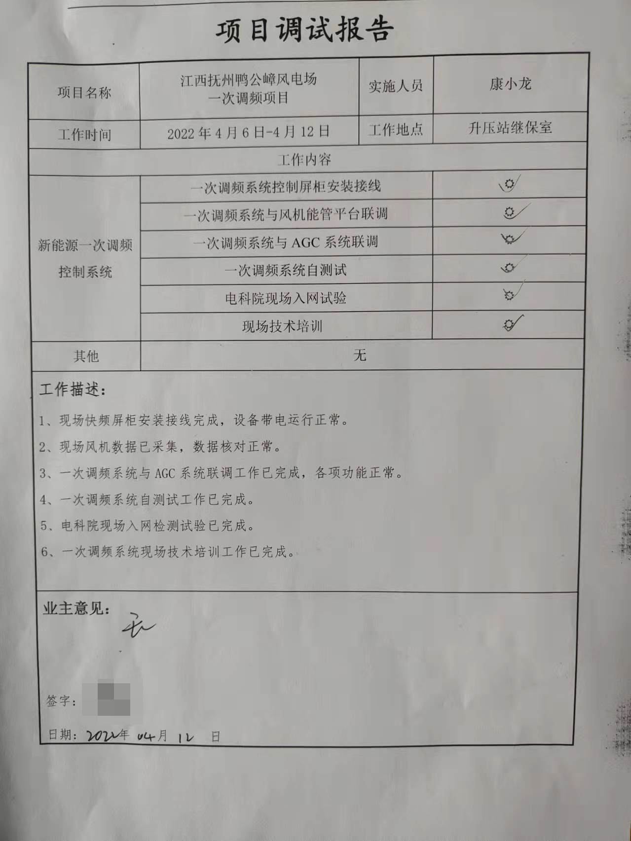 4月12日江西鴨公嶂風(fēng)電場(chǎng)一次調(diào)頻改造項(xiàng)目順利通過江西電科院入網(wǎng)測(cè)試!
