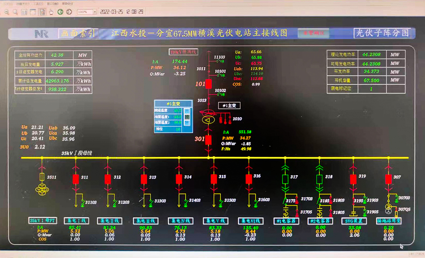 江西分宜橫溪光伏電站場(chǎng)址位于江西省新余市分宜縣分宜鎮(zhèn)境內(nèi),全站共23臺(tái)箱式變壓器通過(guò)4條集電線接入至35kV封閉式母線,經(jīng)一臺(tái)110kV主變壓器升壓后通過(guò)1回路110kV盤鳳線送至220kV鳳嶺變電站。