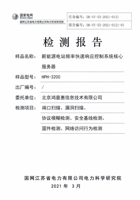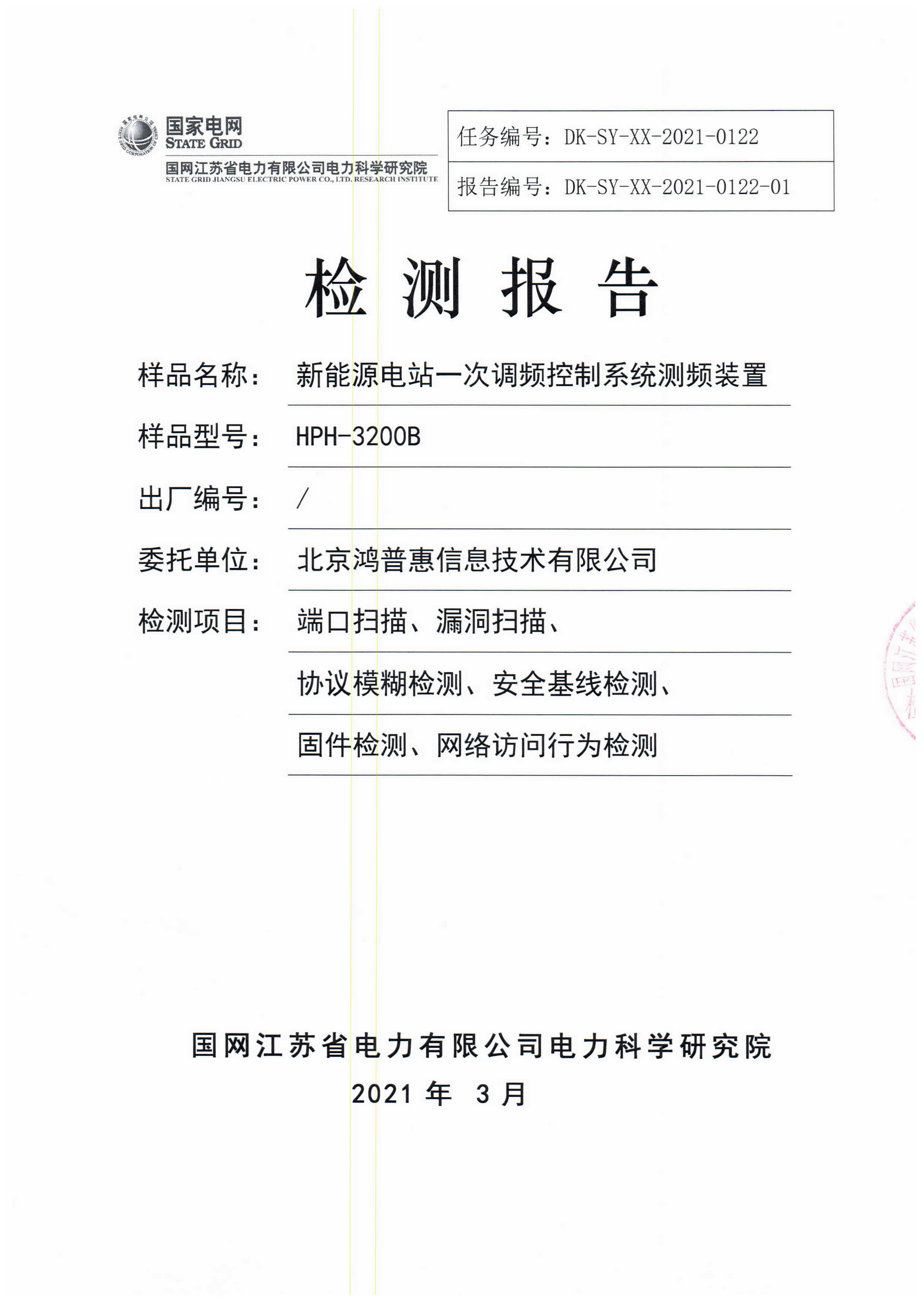 為滿足江蘇電網(wǎng)一次調(diào)頻入網(wǎng)要求,公司研發(fā)團(tuán)隊嚴(yán)格按照《江蘇電網(wǎng)新能源場站一次調(diào)頻技術(shù)規(guī)范》的相關(guān)標(biāo)準(zhǔn),在保證一次調(diào)頻高精度、高效率的同時增加一次調(diào)頻在線監(jiān)測功能、IEC61850規(guī)約功能和4-20mA輸出功能等,使一次調(diào)頻產(chǎn)品滿足調(diào)度主站進(jìn)行一次調(diào)頻遠(yuǎn)方測試的需求。公司組織專業(yè)技術(shù)人員赴江蘇電科院,與院內(nèi)專業(yè)人員進(jìn)行對接測試產(chǎn)品性能。在江蘇電科院高標(biāo)準(zhǔn)嚴(yán)要求的前提下,我公司一次調(diào)頻產(chǎn)品功能檢測與安全檢測全部通過測試,標(biāo)志著鴻普惠一次調(diào)頻產(chǎn)品已滿足江蘇電網(wǎng)要求。