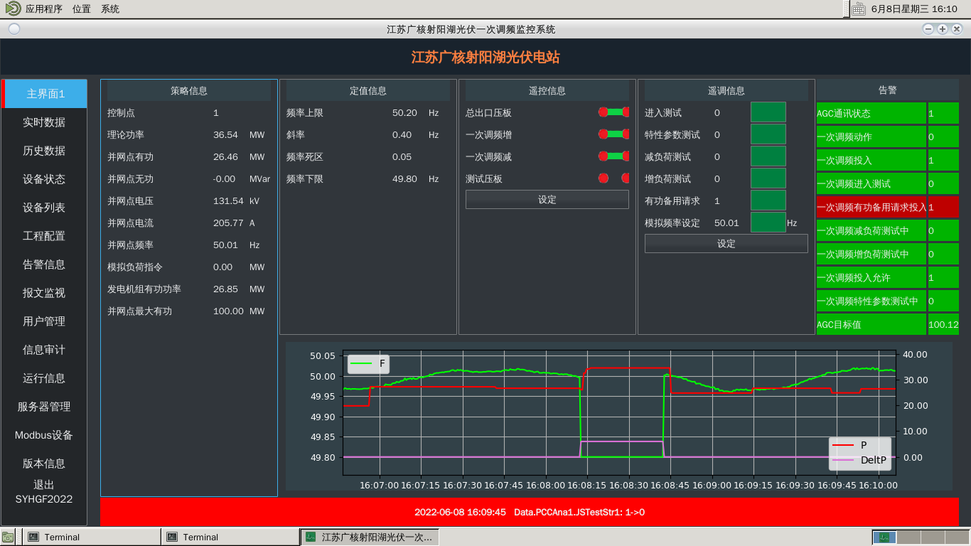 2022年6月9日鴻普惠承接的中廣核江蘇射陽湖光伏電站一次調(diào)頻改造順利通過入網(wǎng)檢測!