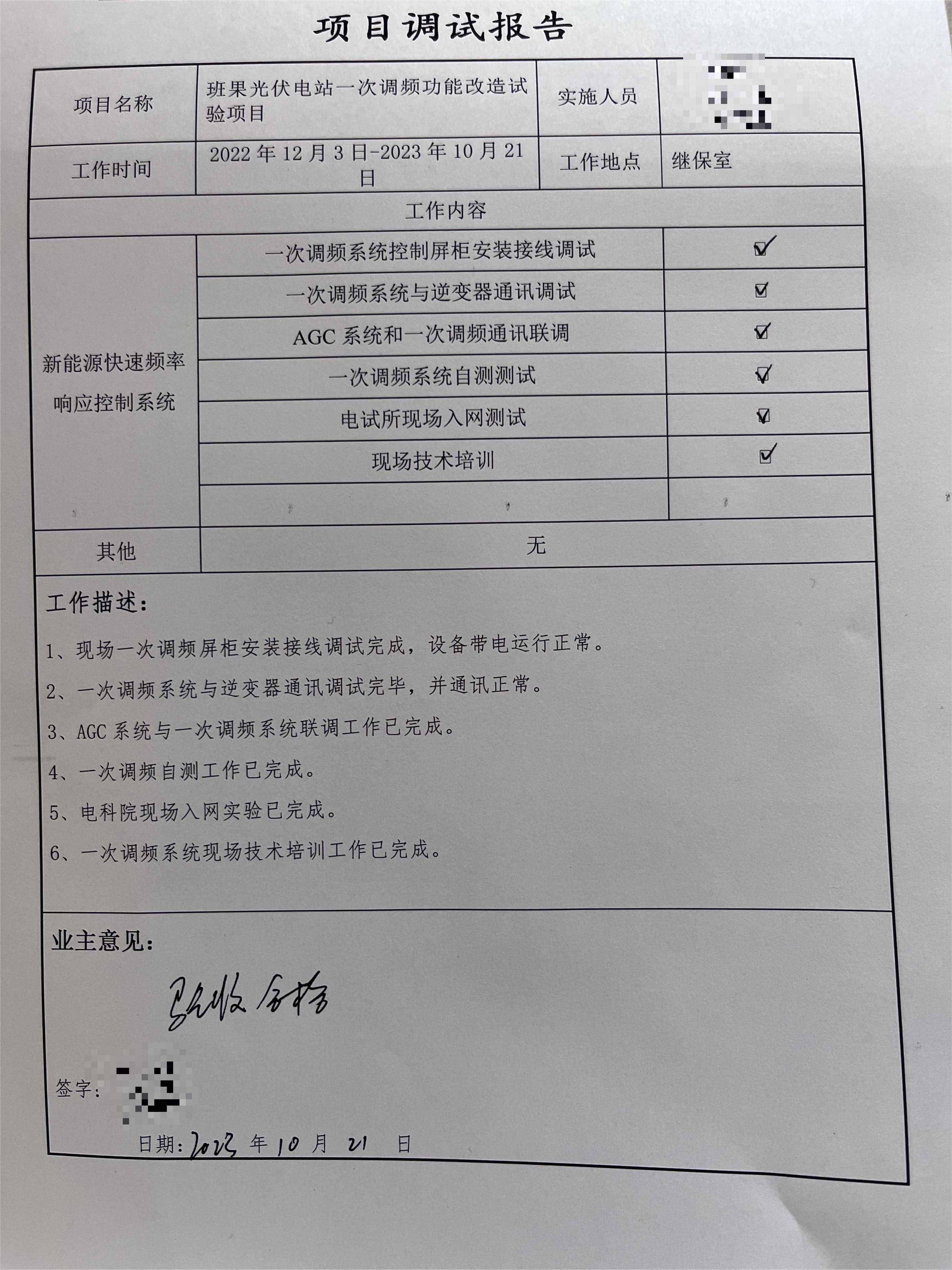 我司項目工作人員克服調(diào)試過程中面臨的時間緊、任務重等諸多困難,安全、高效、優(yōu)質(zhì)的完成任務。班果光伏電站在改造后,滿足云南電網(wǎng)一次調(diào)頻相關(guān)要求,為此項目畫上了圓滿的句號!