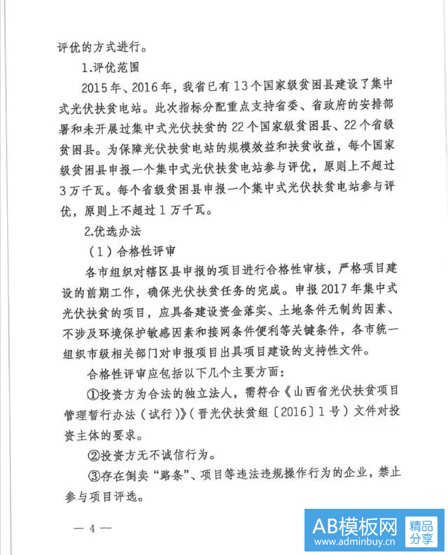 近日,山西發(fā)改委、山西扶貧辦聯(lián)合下發(fā)《關(guān)于開展我省”十三五“光伏扶貧計劃編制工作的通知》。根據(jù)通知,“十三五”光伏扶貧的主要建設(shè)模式為村級電站(包括多村聯(lián)建)和集中式電站兩種。單個村級電站容量控制在300萬千瓦左右,電網(wǎng)公司出具證明具備就近接入條件的,可放大至500萬千瓦。而集中式電站,能源局下達(dá)山西的2017年800MW光伏指標(biāo)全部用于集中式扶貧電站,規(guī)模分配在各市縣申報初審的基礎(chǔ)上,委托第三方機(jī)構(gòu)采用競爭評優(yōu)的方法進(jìn)行。